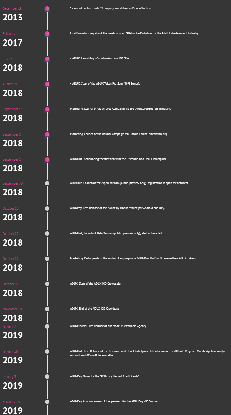 При непрерывном расширении ADUxHub будет одна сеть, одна ваучерная платформа, одна веб-камера и один взрослый канал социальных сетей. Интегрируя партнерскую программу, компании также имеют возможность представить себя через рекламу. Клиенты могут использовать картой ADUxPay Prepaid Card, чтобы иметь реальные деньги и управлять своими деньгами через интегрированные кошельки платформы ADUxHub или ADUxPay.